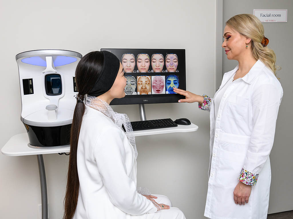 At the first stage, we performed a hardware-based skin analysis using the Visia system to determine the level of vascular dyschromia and signs of inflammation.