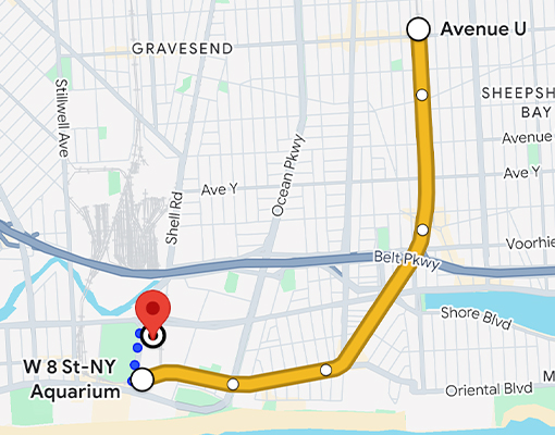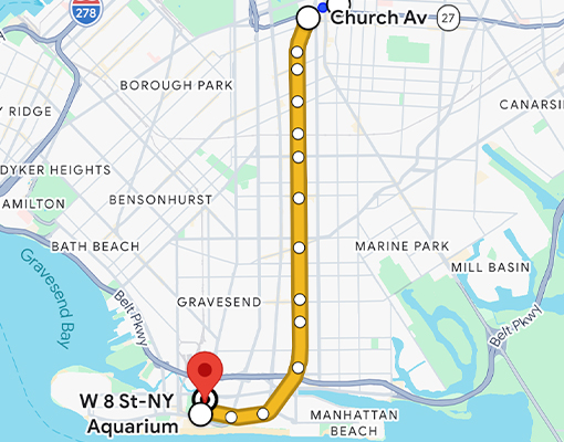Get off at West 8th Street / New York Aquarium and follow the walking directions above.